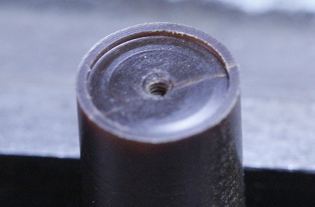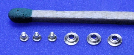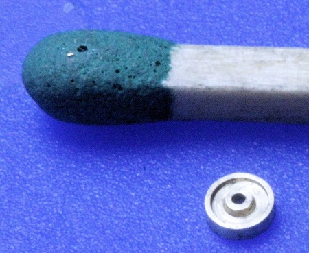 In der Mitte eine M1,2-mm-Bohrung. Die Vertiefung (Durchmesser 6,8) ist in der