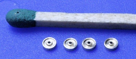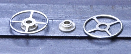 Komplettierung der Radlager gedreht. Die 1-mm-Zapfen der Teile links passen in