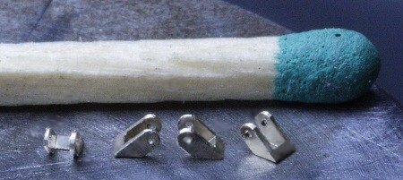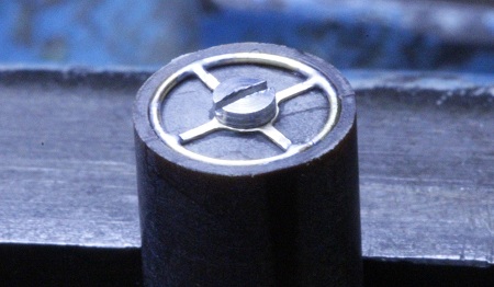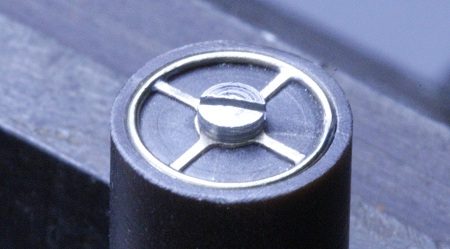 Zentrierzapfen, Durchmesser 3 mm bei 0,3 mm Länge. Die Messingschrauben haben