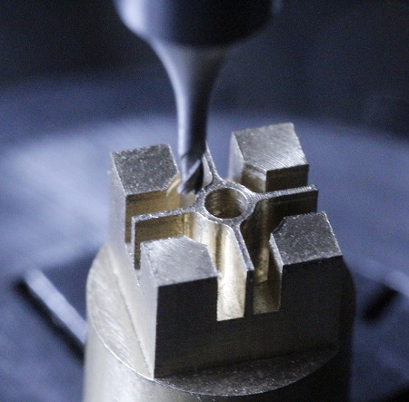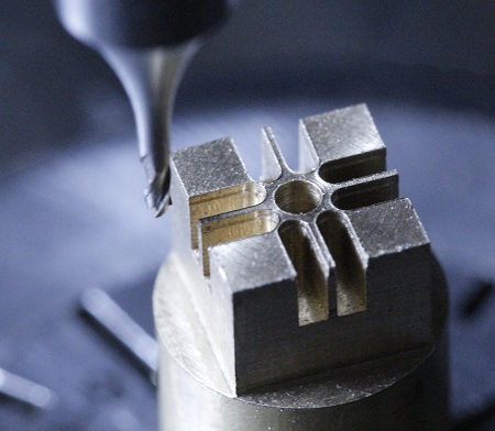 acht Nuten mit einem 1-mm-Fingerfräser maßhaltig 2,4 mm tief einfräsen kann.