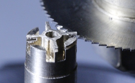 einer 0,2-mm-Metallkreissäge 0,2 mm dicke Scheiben abgesägt. Ich fahre mit der