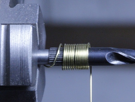 weichen 0,4-mm-Ms-Draht um einen 4,7-mm-Bohrerschaft auf der Drehmaschine. Nach