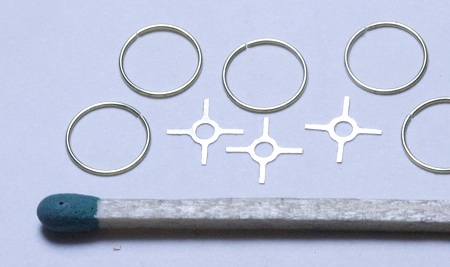 und fünf Handrad-Ringe von der Messing-Feder abgetrennt (die Ringe sind hier
