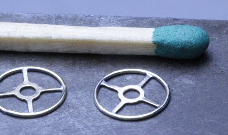 Das Foto zeigt drei 0,2 mm dicke Radsterne (entgratet)