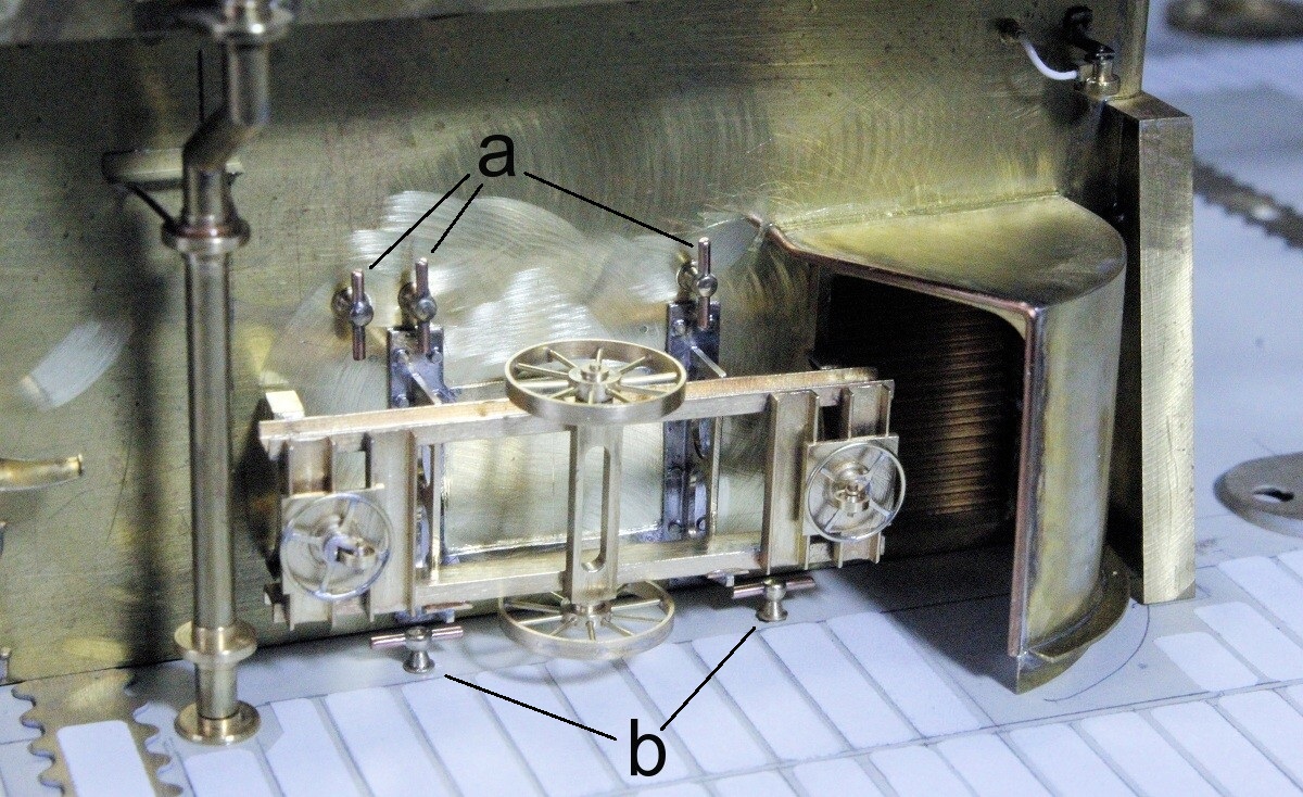 An der Unterseite des Torpedowagens werden diese Stützräder mit Zentrierung