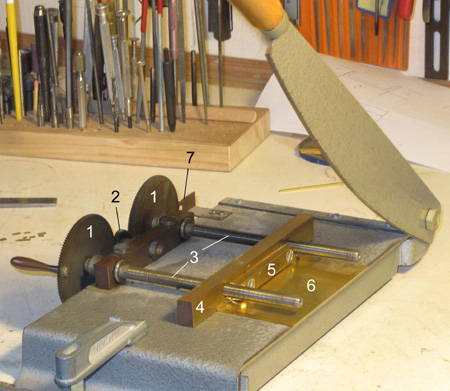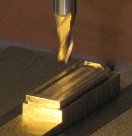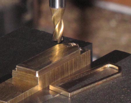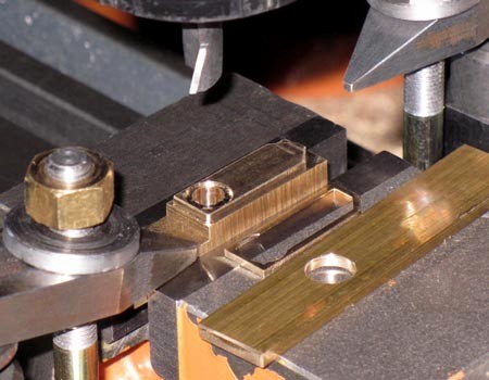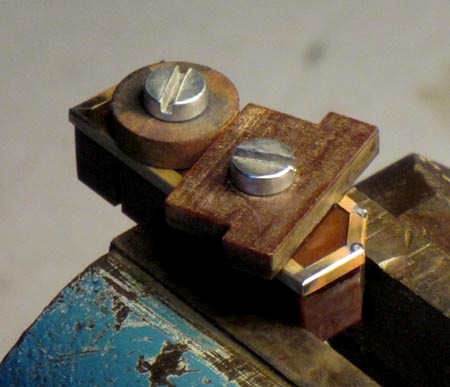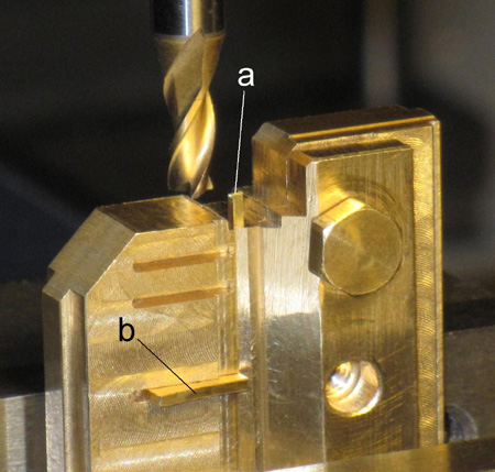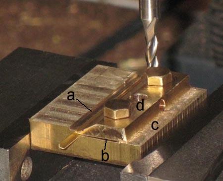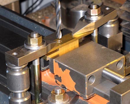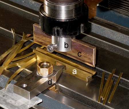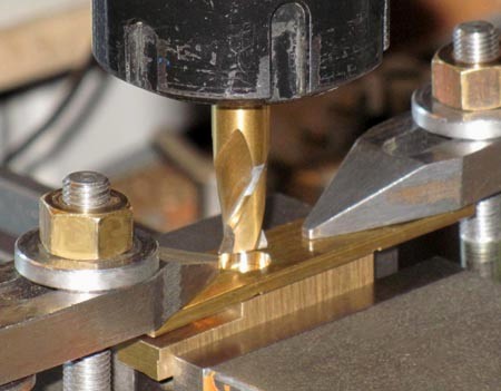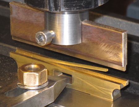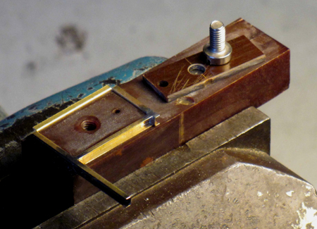 Spannbrücke (im Bild) mußte gefräst werden. Ein Stück Flachmessing erhielt eine