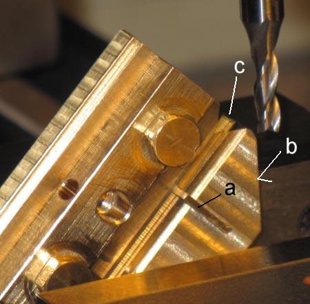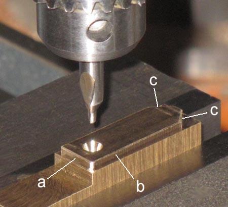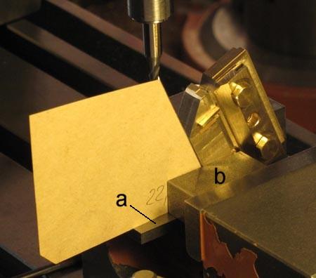 mm) in die Stufe hinein. b ist eine angefräste Fläche an der Vorrichtung, damit