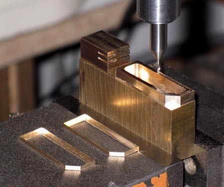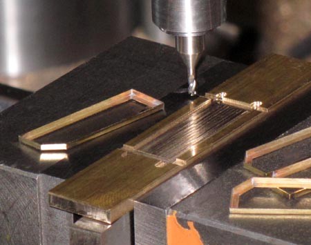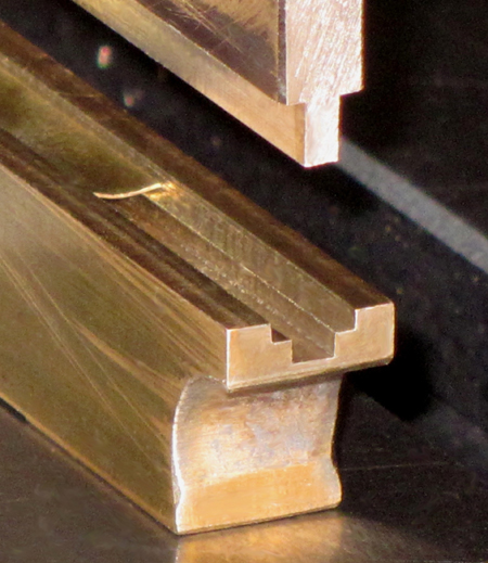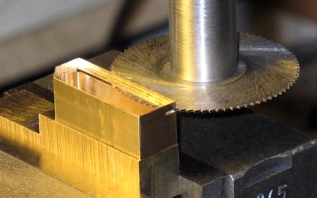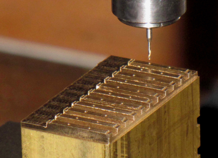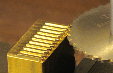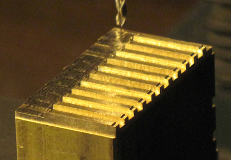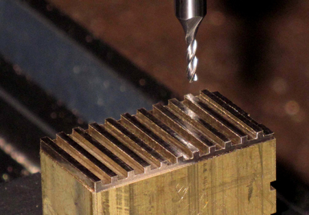 in 3,4-mm-Abständen 1 mm tiefe Nuten in einen Ms-Klotz gefräst. So entstehen die