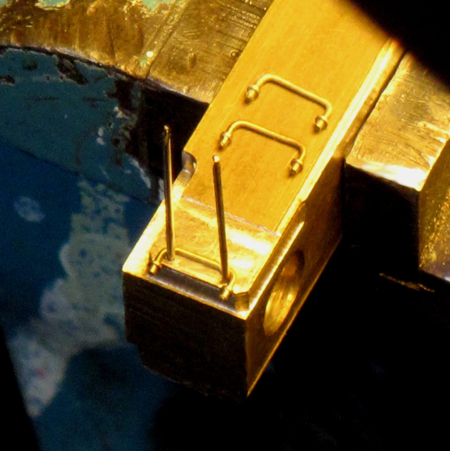 Biegevorrichtung (zwei 0,4-mm-Bohrerschäfte, Koordinaten-Bohren!) werden die