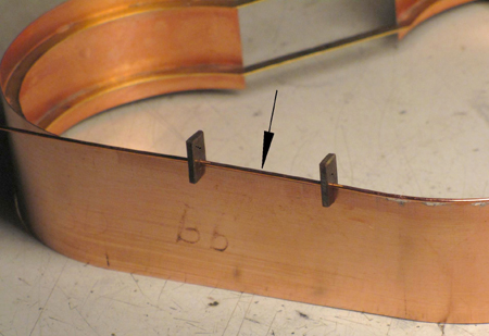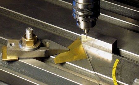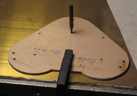 Damit die Richtung stimmt, wurden sie gegen schnell gefräste Anlagen aus Hartpapier gestützt. Die gebogene Nadelfeile (links) drückt das jeweilige