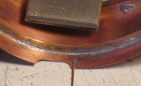 die sparsamen Lötpunkte habe ich "verlaufen" lassen (noch einmal mit Säure