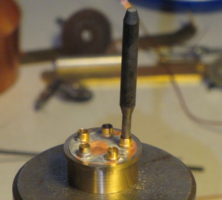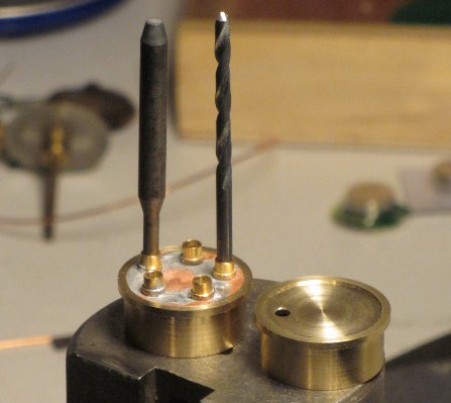 Zentrierstift. Das Gewicht links ist ein sog. Strakgewicht aus einem Satz von 18