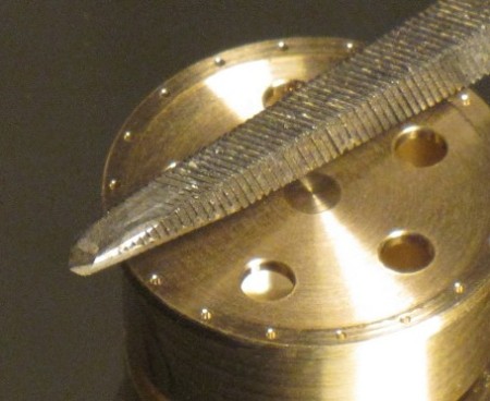 Dazu verwende ich einen Entgrater, den ich aus einer kleinen Feile geschliffen