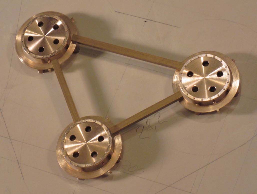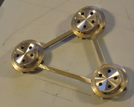 entsprechender Länge gefräst und jeweils im Winkel von etwa 120° untergeklebt.