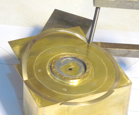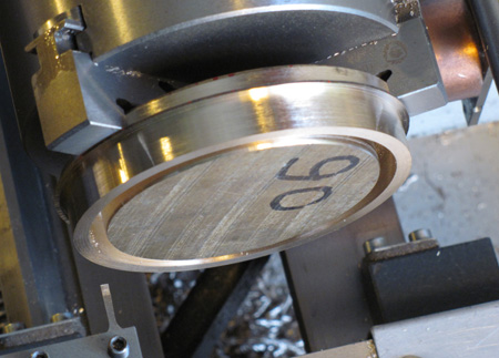 eine ausreichend tiefe Plannut in eine Messing-Scheibe gestochen...