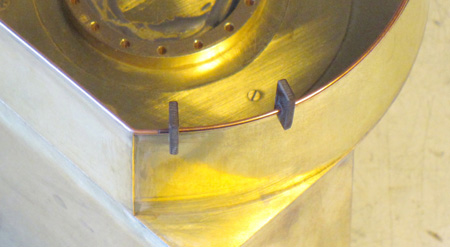 Waffenwanne werden ausgeschnitten und um den Rundungskörper (links im Bild)