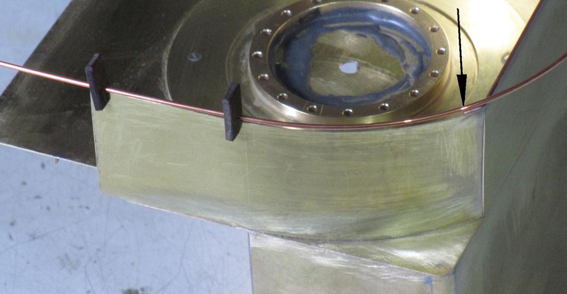 anzulötende Draht aus einem gerundeten und einem geraden Teilstück. Mit den